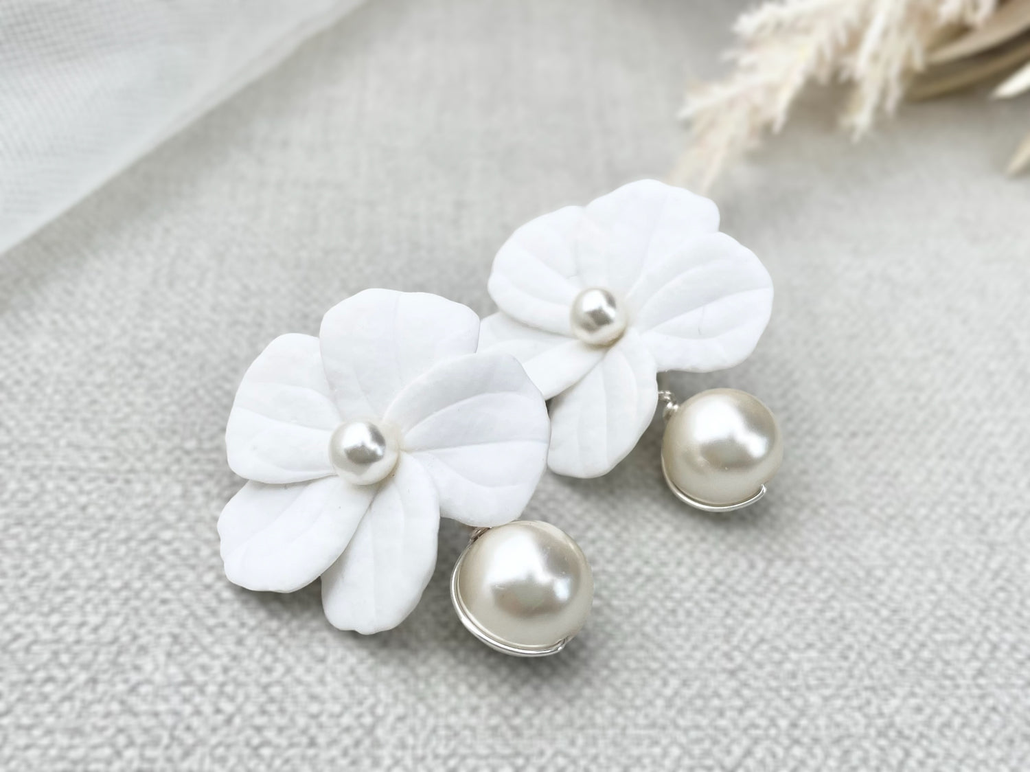 Introducing the Bloom earring are a truly striking statement piece of jewellery. These earrings combine sculpted clay floral studs and Preciosa glass pearls.
