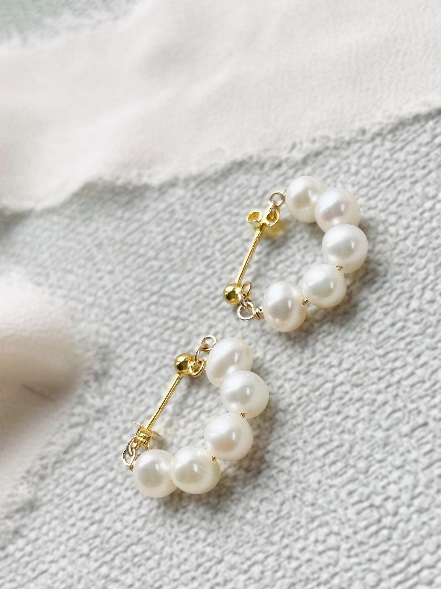 Featuring a classic hoop design with 4 stunning pearls hung from a gold stud to form a hoop earring. The Remi earrings are the perfect addition for any bride wanting a luxury earring which is classic and sophisticated.