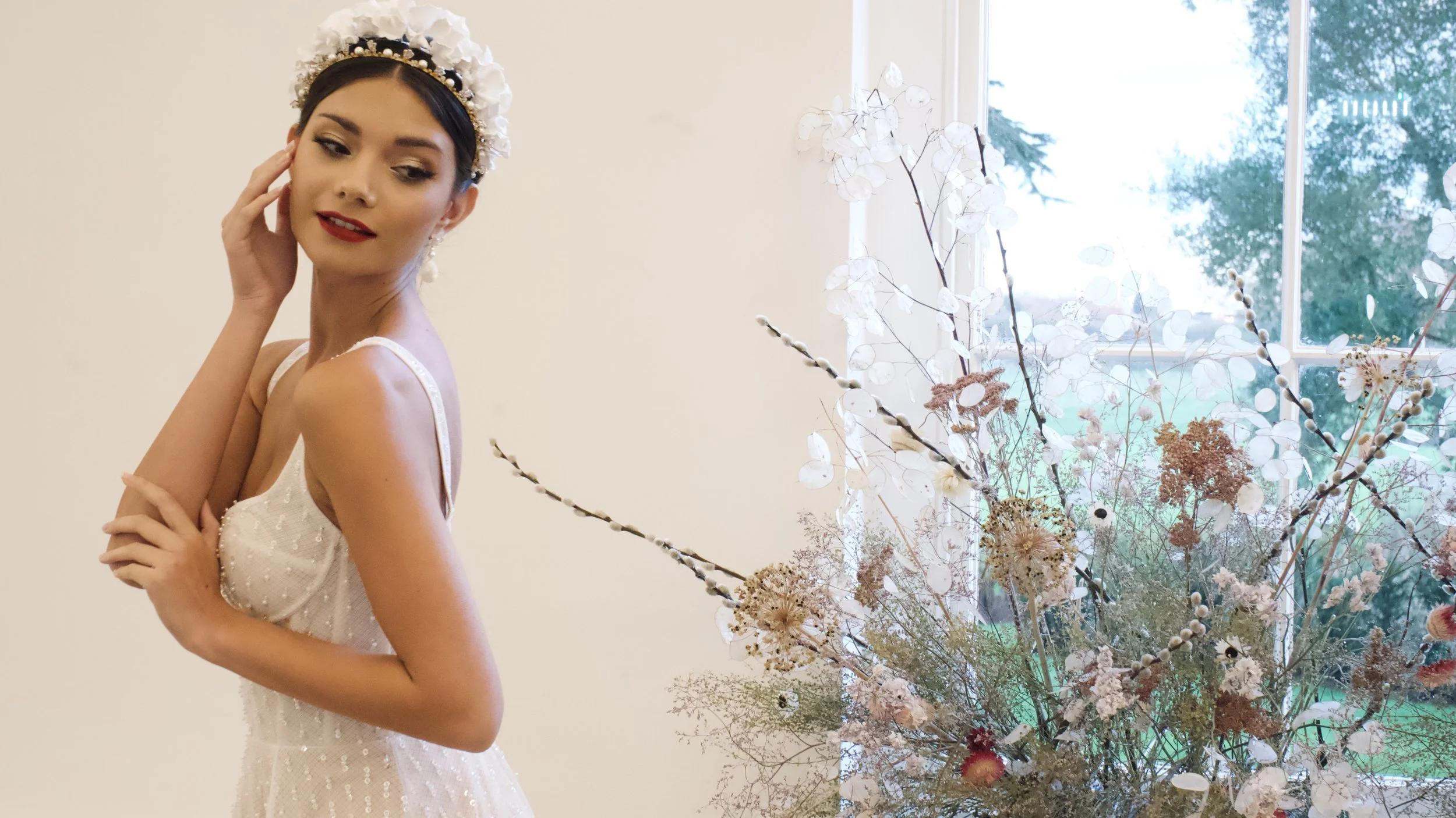 Captured on film by Rebecca Conway Photography, with photography by Claudia Harrison White, the shoot brought together an exceptional team of creatives. Hair styling by Jessica Reeves and make up by Lauren Butler complemented romantic floral design by Alice Hare Florist, while bridal gowns from Pearl and Eve Bridal Boutique completed the look.